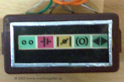 Diese LED's habe ich in einem Schaltergehäuse eingebaut (War früher in meinem Trabi). Die entsprechenden Symbole (Aufreibebuchstaben) verdeutlichen, was die jeweilige Funktion ist. |
