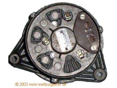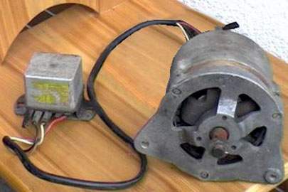 Die älteren Vertreter der Drehstromlichtmaschinen besaßen noch separate Regler, die am linken Kotflügel befestigt waren. Während diese erste Regler-Generation noch mechanischer Natur waren, wurden später die Regler durch eine sogenannte Hybridschaltung ersetzt, die vergossen in einem kleinen Gehäuse, direkt an der Lima aufgesteckt und festgeschraubt wurde. Die Drehstromlichtmaschine, die mit mechanischem Regler betrieben wird, kann man u.a. an den Anschlüssen erkennen. |