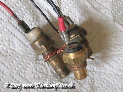 Also flux den Geber aus dem Zylinderkopf heraus geschraubt (vorher natürlich etwas Kühlwasser ablassen) und zum Vergleich noch ein paar andere Geber (einen gebrauchten und einen neuen) dazu genommen. Um die Sache abzurunden, empfehle ich auch den Thermostaten zu überprüfen. In dieser Kombination lernt man den Regelkreis für die Temperatur sehr genau einzuschätzen. Ein Aha- Effekt nicht ausgeschlossen.