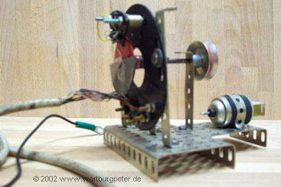 Die Steuerung der Trabantzündung ist unkompliziert, da die beiden Zündzeitpunkte um 180° versetzt sind. Ich setzte 2 Lichtschranken ein, um die notwendigen Informationen für die dynamische Zündzeitpunktverstellung (statt des Fliehkraftreglers) zu erhalten. Eine fest montierte LED diente gleichzeitig der Einstellung des Zündzeitpunktes in Verbindung mit einer Uhr... |