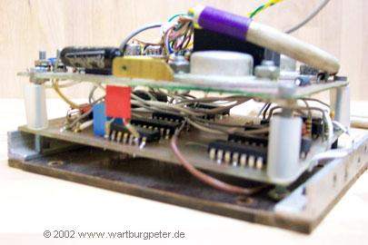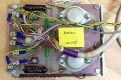 Unter dem Leistungsteil saß ist die Platine mit Logikgattern, die die drehzahlabhängige Verschiebung des Zündzeitpunktes übernehmen sollten. Mit diesem Teil hatte ich so meine Schwierigkeiten. |