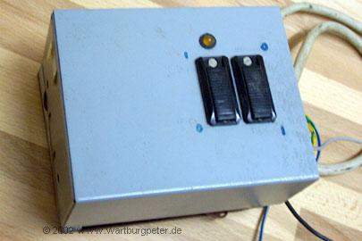 Das Gehäuse von außen. Ein Schalter diente zum Abschalten der Anlage, der andere Schalter zum Abschalten der dynamischen Zündzeitpunktverstellung. Der war meistens aus bei mir ;-) |