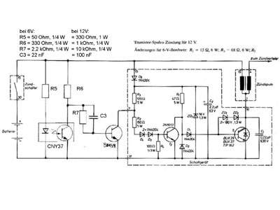 Vom Einzylindermotor der TS zum Wartburg-Dreizylinder ist der Weg nicht allzu weit. Ich denke, das Interessante an dieser Schaltung ist der Einsatz im 6V-Umfeld. Die Schaltung wäre 3 mal für den Wartburg aufzubauen. Für die Lichtschranke benötigen Sie dann eine etwas geänderte Steuerscheibe. Diese sog. Sektorscheibe sollte wie bei der handelsüblichen EBZA aussehen.