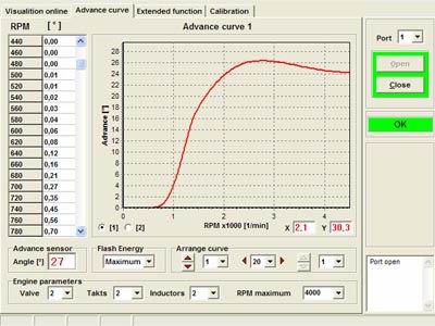 Blick auf die Software, man kann sehr komfortabel den Zündzeitpunkt drehzahlabhängig einstellen. |