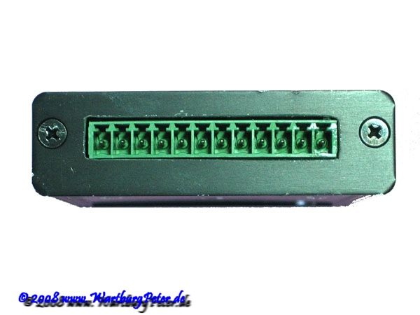 Auf den Bildern sieht man die Steckerleiste auf der einen und die DIP-Schalter auf der anderen Seite.