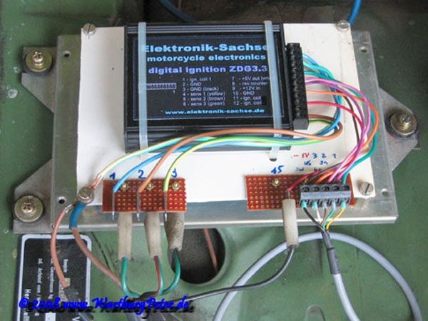 Die Zündanlage kann jeder Zeit mit neuen Kurven ausgestattet werden, wobei die Programmierung ausschließlich von Herrn Sachse vorgenommen wird.