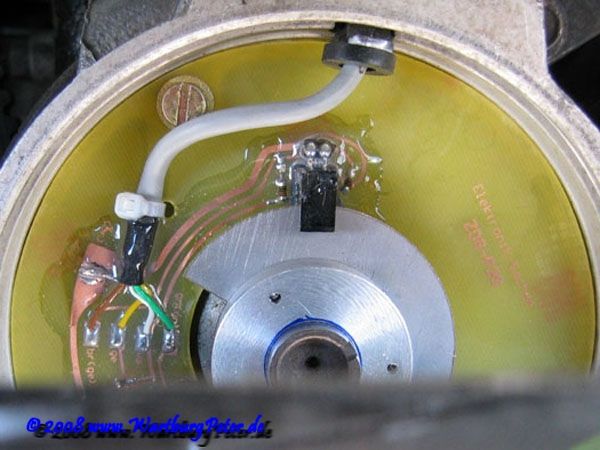 Der fünfpolige Anschluß der Gebereinheit ist verlötet. Problematisch beim Einbau am Auto ist einzig das Einstellen der Höhe der Sektorscheibe. Diese darf nicht an den Bauteilen der Lichtschranke schleifen.