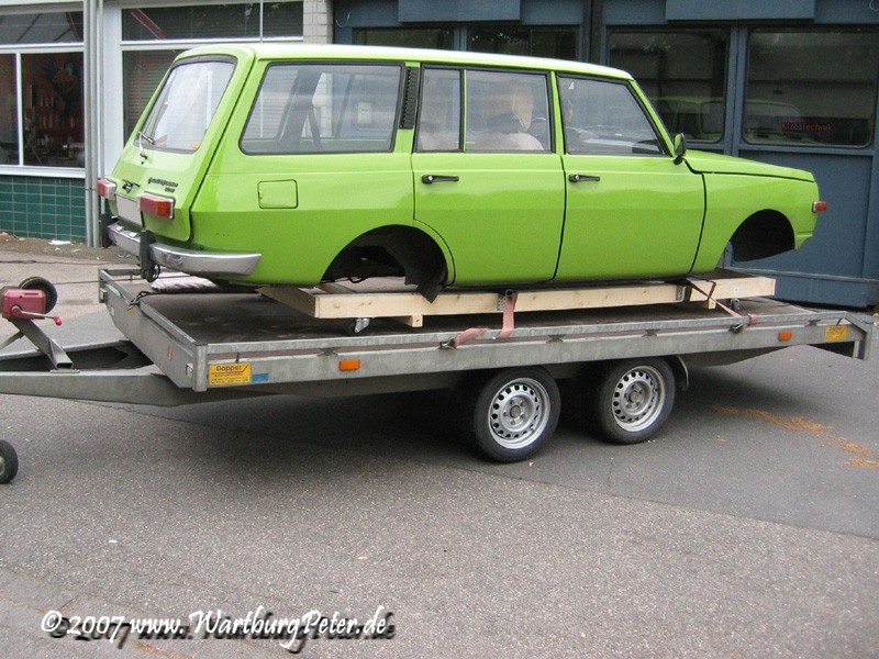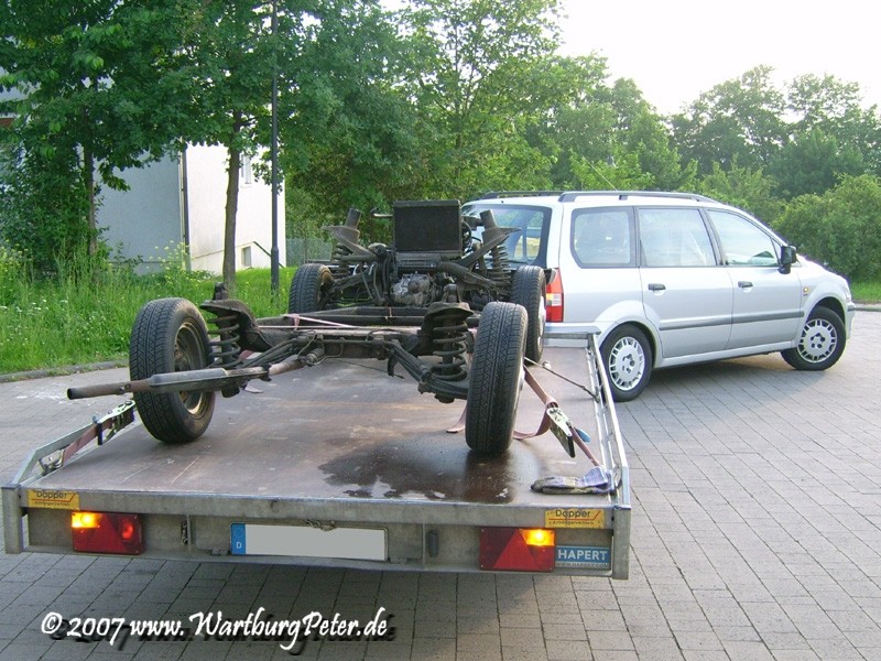 Mein besonderer Dank geht hier an mein Freund Bernd, der keine Sekunde gezögert hat, mir beim Transport des Wartburgs zu helfen! PKW-Transportanhänger plus Karosserie sind zu schwer, um sie mal eben an einen (zweiten) Wartburg zu hängen und Hamsterhaken sind heute nicht selbstverständlich, noch nicht einmal bei Leihwagen. Viele die ich fragte, konnten oder wollten mir nicht helfen. Bernd hat sofort ja gesagt! Diese besondere Hilfsbereitschaft ist überaus lobenswert und mein Dank wird ihm ewig nachschleichen! Ach ja, den Transport zum Zusammenbau übernimmt er auch! Toll!