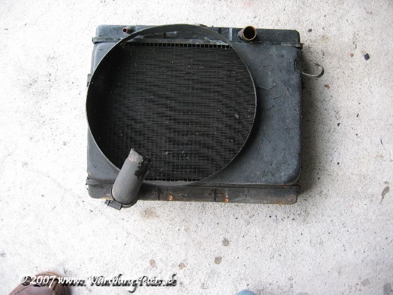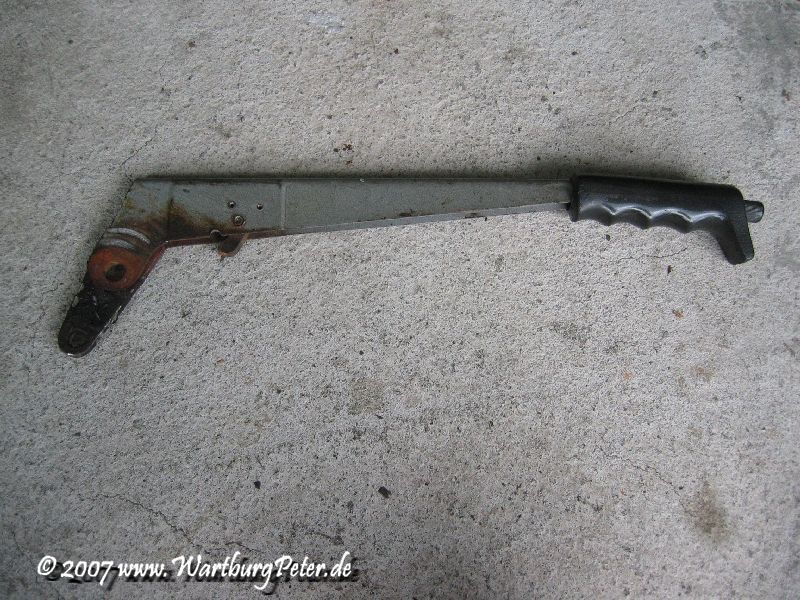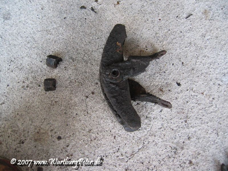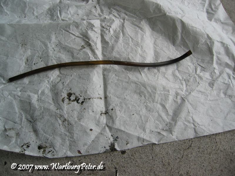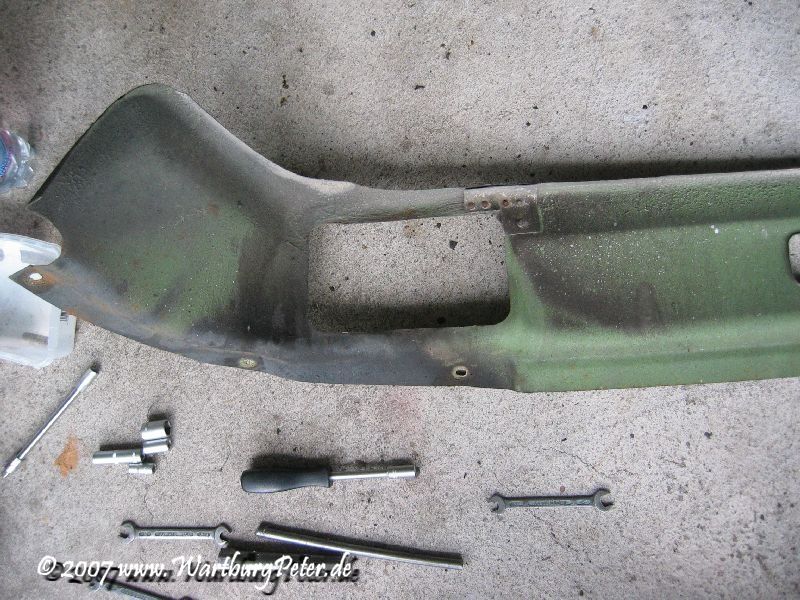 Frontschürze. Überall eingerissen und für viel Geld einst in einer hiesigen Firma repariert (geschweißt). Leider hat die geflickschusterte Reparatur kaum 4 Stunden gehalten. Die Firma hat ihre Arbeit mit Gummikleister übertüncht. Bereits beim Anbau ist das Ding auseinander gebrochen.