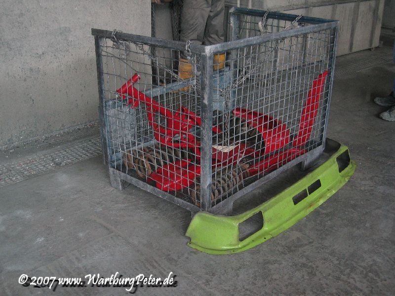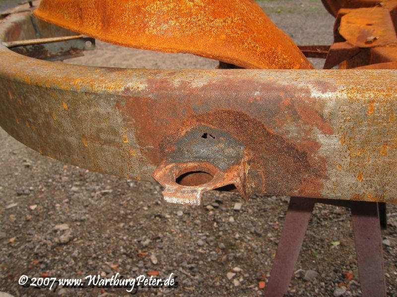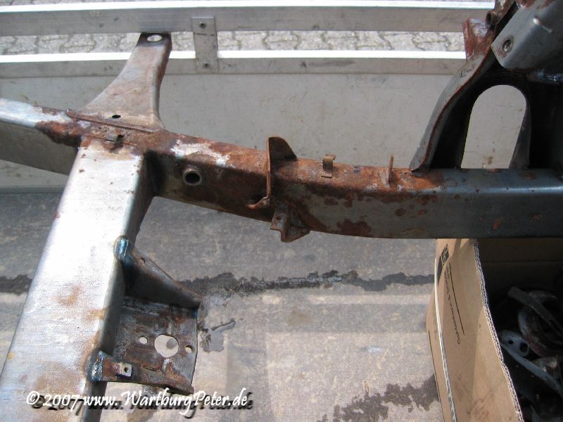 Die professionelle Instandsetzung des Rahmens war ohnehin geplant. Probleme an den Karosserieauslegern führten mich bereits 2002 zu Olaf. Also wieder das Wartburg-Gespann gesattelt und den Rahmen in die Werkstatt geschafft. Die Distanz von ca. 550 km habe ich mit dem Anhänger am Camping in 9 und 13 Stunden je Richtung bewältigt.