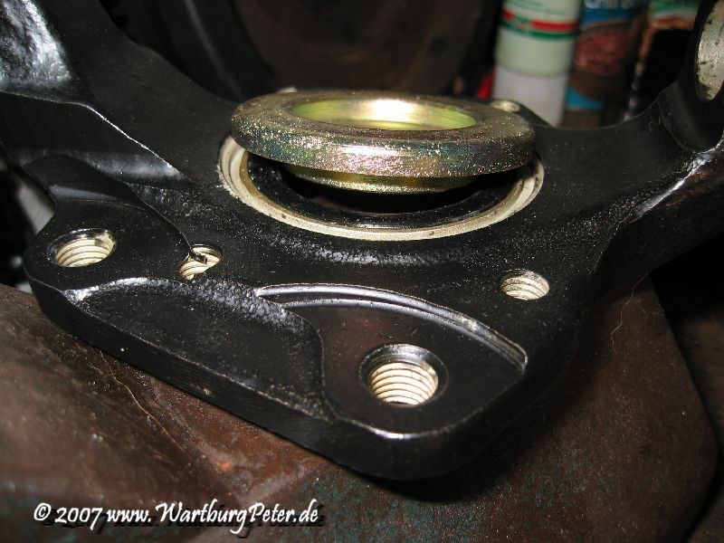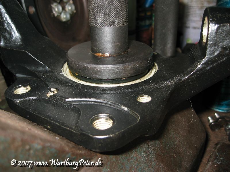 Die Dichtlippe des Simmerings muß "in einer Spur laufen" und nicht im Zickzack. Später wird hier der Spritzring der Antriebswelle in die Dichtung "eingreifen".