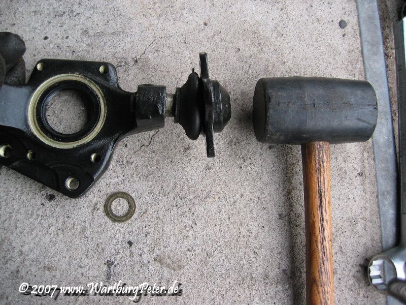 Die galvanisierte Schicht Zink ist zwar nur Mikrometer dick, dennoch sorgt sie für einen straffen Sitz. Gut gefettet kann ich die Kugelköpfe mit einem Gummihammer leicht überreden (schlimmer als Fahrbahnstöße ist das auch nicht). Den Rest zieht dann die Mutter in Position.