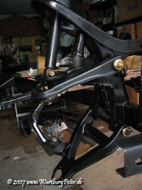 Das Einsetzen der Schwenklager in die Dreieckslenker ist kein Problem und mit wenigen Handgriffen erledigt. Da ich seit Jahren ohnehin mir zur Angewohnheit gemacht habe, jede Schraube und Mutter zu reinigen und zu fetten, werde ich auch in einigen Jahren noch die Schraubverbindungen lösen können.