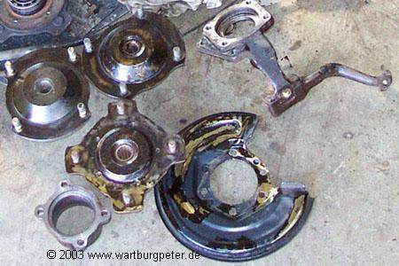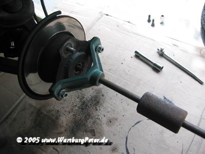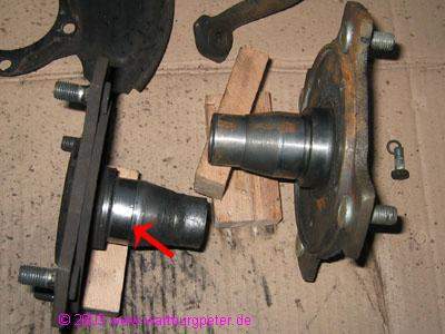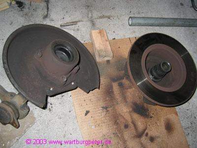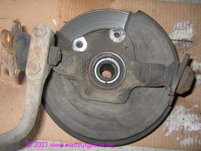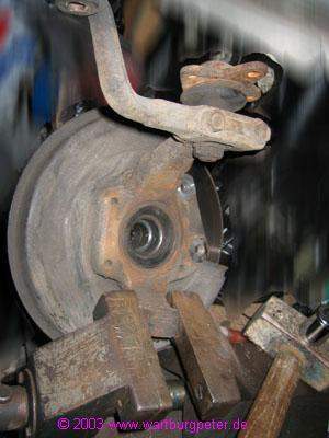 Bei Wartburgs ohne Scheibenbremse weicht die Demontage an dieser Stelle ab. Da ähnelt die Vorderachse eher der Hinterachse ;-)