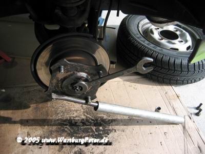 - man verfügt über einen Abdrücker, der befestigt an den Radmutterbolzen die Antriebswelle herauspreßt.