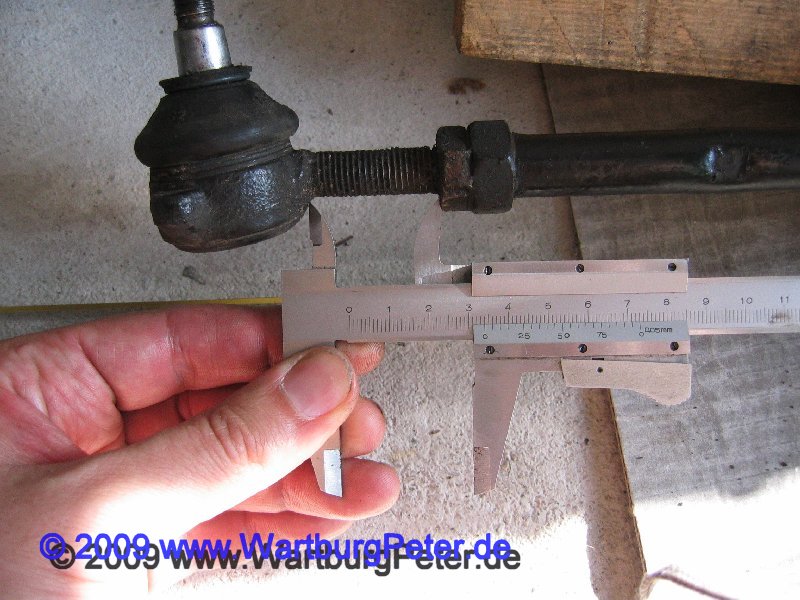 Um mir die später erforderliche Einstellarbeit zu erleichtern, nehme ich noch schnell Maß an den Spurstangenköpfen (Länge der herausschauenden Gewinde).