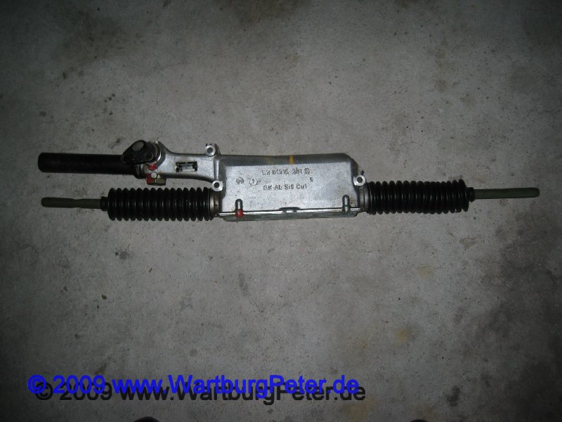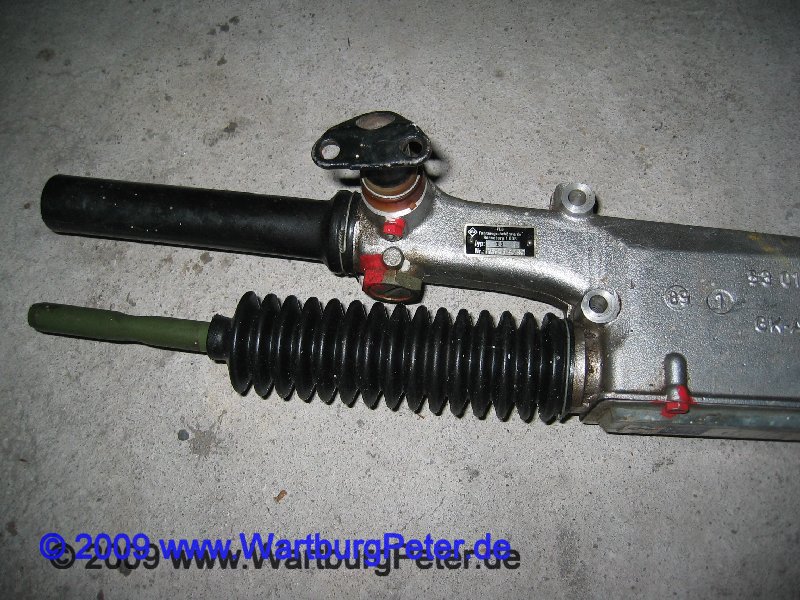 Erfreulicherweise verfüge ich noch über ein niegelnagelneues Lenkgetriebe (20 Jahre Lagerung) der letzten Serie. Das AWE hat in Zusammenarbeit mit dem Werk in Ronneburg 1987 einen weiterentwickelten Typ herausgebracht. Dieser kann problemlos gegen das Vorgängermodell ausgetauscht werden. Zum 1.3'er sind die 353'er Lenkgetriebe nicht kompatibel. Der 1.3'er hat eine etwas geänderte Übersetzung und vor allem längere Spurstangen. Zumindest ist der hier geschilderte Arbeitumfang mit denen am Wartburg 1.3 identisch.