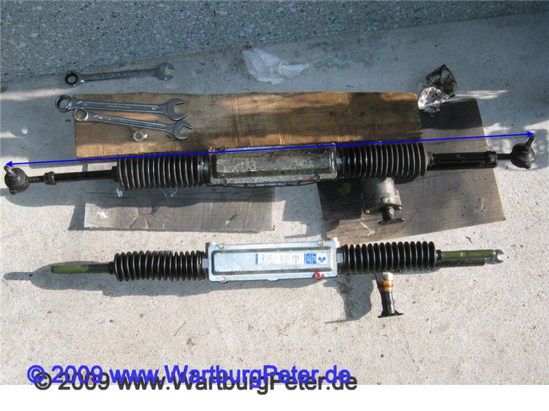 Die Spurstangenköpfe sind noch einwandfrei, also kommen Sie zusammen mit neuen Sicherungsblechen an das Lenkgetriebe unter Einbeziehung der zuvor ermittelten Abstände, die zu meinem Wartburg passen.