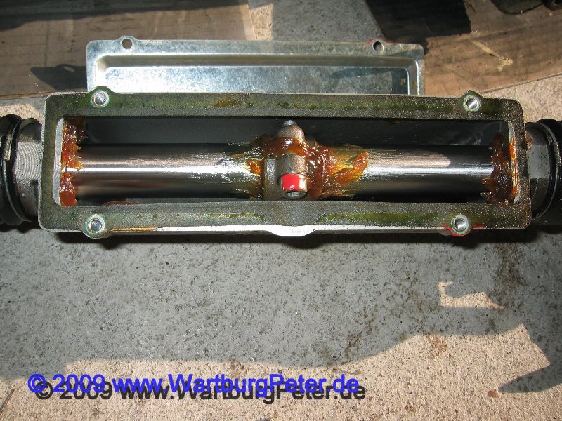 Neugierig, wie ich bin, öffne ich noch das neue Getriebe, um zu sehen, wie seitens AWE bzw. Werk Ronneburg 40g Fett an jeder Seite im Original aussehen.