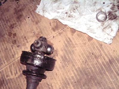 7. Gelenkwellen. Ein Thema zum verzweifeln. Versucht nie, die Gelenkwellen raus zu nehmen, ohne noch vorher die Zentralmutter bei auf’n Rädern stehenden Auto zu lösen. Wer das vergißt (so wie ich) ist schon verloren. Wenn einem dann noch ein Ring vom Zapfenstern abfällt (ich hatte sie gesichert, keine Frage), kann man sich eigentlich nur noch erschießen. Ich hatte beim Einbau dann irgendwie eine Hand zu wenig, um den unteren Ring vom Zapfenstern festzuhalten und bin wohl irgendwo angeeckt. Wenn man dann noch (trotz mehrmaligen Nachzählen beim Reinfummeln der Nadeln – übrigens hilft Fett da ungemein, um sie festzukleben) nach dem Zusammenbau eine übrig gebliebene Nadel auf dem (glücklicherweise) untergelegtem sauberen Tuch findet, beginnt man sich zu fragen, warum man sich das ganze antut.