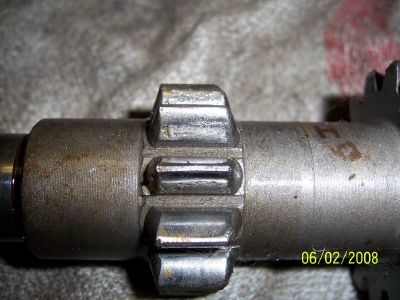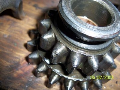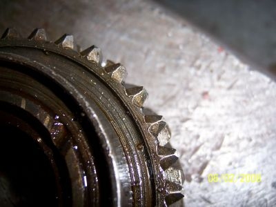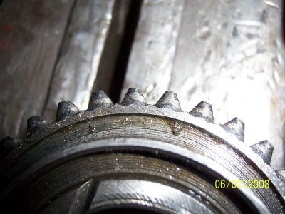 Zum Vergleich, hier (rechts) ein funktionsfähiges Rad vom 3. Gang. Nur zur Erklärung, ich meine die Zähne für die Schaltmuffe.