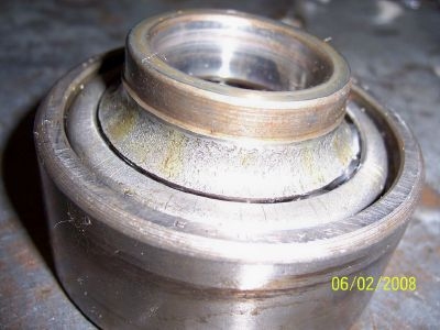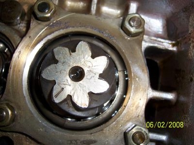 Schwachpunkt bei allen Getrieben: das Drucklager vom Kegelrad in allen Variationen, oftmals schon beim Herausnehmen des Differentiales zu sehen, wie hier (Bild links), Käfig geplatzt.