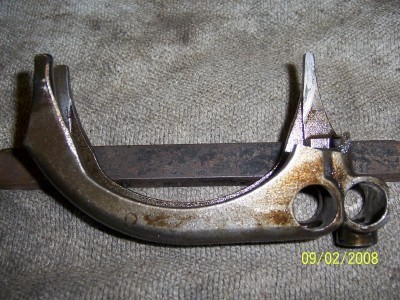 Auch diese Rückwärtsräder haben schon mächtig Karies (links). Bei den Schaltgabeln sind die Ergebnisse auch alle nicht besser. Hier Gabel erster Gang (Bild mitte), die hat sogar aussen schon geschliffen. Oder hier 3./4. Gang (Bild rechts), eingelaufen vom feinsten. Ich vermute vom ruhenden rechten Arm auf dem Schalthebel.