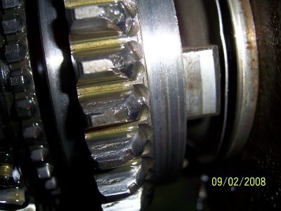 - Seitlichen Getriebedeckel entfernen und den Zustand der Zahnräder des ersten Ganges (geradverzahnung) beurteilen.