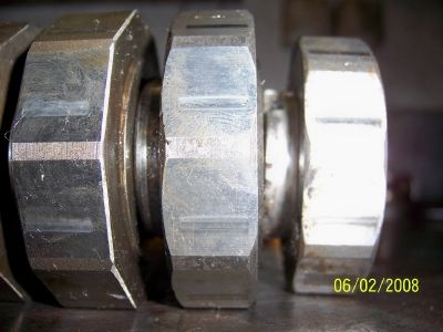 Bild mitte: Beim dritten von links handelt es sich um eine regenerierte Version, die übergeschliffen wurde (erkennbar an den nach aussen gewanderten Eindrücken der Rollen und an den kleineren Stegen).