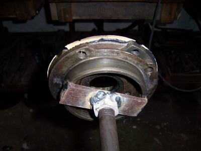 Für mich am einfachsten funktioniert das mit einem alten Schulterlager, einfach ein Flacheisen drüber mit 'ner Mutter für den Zughammer. Die Einstellmutter des Differentiallagers dient als Verbindung.