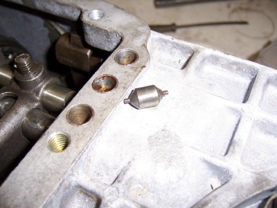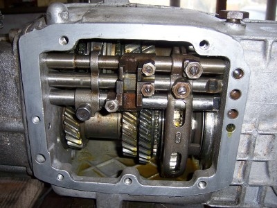 Nachdem das Differential eingestellt und die Einstellmuttern gesichert waren, ging es an den Einbau der Schaltung. Wichtig sind diese kleinen Walzen, die ein gleichzeitiges Einlegen zweier Gänge verhindern sollen und dies auch können! Zwei dieser Walzen sind zwischen den Schaltwelleneingebaut.