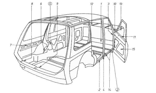 | 15 | B | Türinnenräume links u. rechts auch unter Zwischenblech zum Scharnier oben | Durchbrüche der Innenbleche - | Falzkante seitl., Punktschweißverbindungen, Innen- u. Außenblech unten sowie Hohlraum an Scharnierseite (Schloß nicht einsprühen) | Türverkleidungen entfernen |