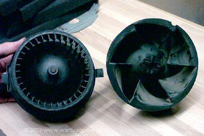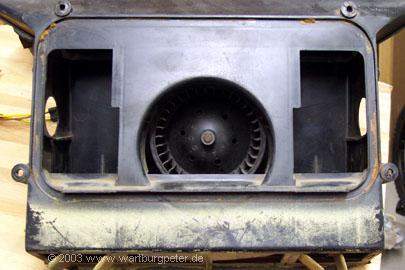 Zum Vergleich: der Wartburglüfter hat die etwas gröberen Lamellen und einen vergleichbaren, aber völlig gekapselten Motor.