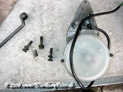Der Anlasser ist oft schwer zu erreichen oder gar herauszunehmen, aber wenn man oben herum alles entfernt hat, muß man nicht einmal unter das Auto dazu kriechen. Ebenso ist es nicht erforderlich, die Motorseitenbleche abzubauen, über die die Wartburgs der Reihen 311, 312, 313 verfügen. Das man zuvor die Batterie abgeklemmt haben sollte, ist selbstverständlich. |