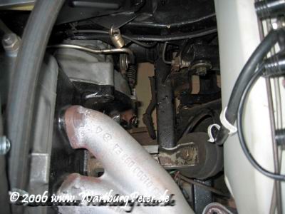 Recht praktisch am Wartburg 312/ 353 ist, bedingt durch die Bauform des Hauptschalldämpfers, daß man diesen an seinem Rohr bzw. der Halterung "auf den Rahmen hängen kann", wo er sicher liegen bleibt. |