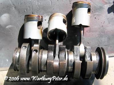 Im übrigen sind Kurbelwellen alter 900cm³ Motore früher 311'er und 313'er Wartburgs nicht mit denen kompatibel aus 312'er und 353'er Motore. Jedoch läßt sich auch bei diesen alten Motoren die Abdichtung von Simmering auf Kolbenring umrüsten, was auch von den verbliebenen Motorenwerkstätten empfohlen und praktiziert wird. Die Originalität ist dort von außen nicht zu erkennen und ein Fahrzeug, daß im Jahr kaum einmal gestartet wird, schwächelt schnell an einem vertrockneten undichten Simmering. |