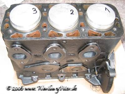 Da die Kolben im OT über die Zylinderfläche hinausstehen, sollte man entsprechende Vorkehrungen treffen, das die Last des Motors nicht unnötig auf einem Kolben ruht.