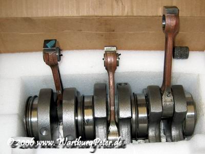 Zwischenzeitleich hat Fa. Eisenacher Kurbelwellenmanufaktur meine alte Kurbelwelle zerlegt, gereinigt und mit neuen Lagern wieder zusammengesetzt, Pleuel nachgearbeitet und alles einbaufertig ausgewinkelt und gewuchtet.