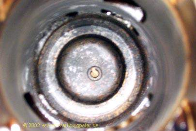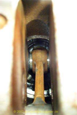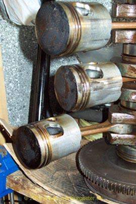Durch den Klemmer, ist der Kolben "in sich zusammengefallen". Diese Worte umschreiben das Phänomen am genauesten. Bei einem Klemmvorgang wirken gewaltige Kräfte und wenn der Freilauf nicht wäre, kämen noch eine Tonne Trägheit hinzu! Der Kolben ist förmlich kleiner geworden und das Spiel, das er an seiner Unterkante jetzt hat, führt während der Bewegung zwischen OT und UT zum Anschlagen an die Zylinderwand. Aufgrund der um 120° versetzten Pleuel "beschuldigt" man oft den falschen Zylinder, weil man beim Durchdrehen von Hand bei einem anderen Zylinder, der gerade im OT oder UT sich befindet, den "Knacks" dorthin interpretiert. Präzise nachweisen läßt sich das Ganze nur durch aufwendige Messungen. Da der Motor mit jetzt ca. 4.000 km noch sehr neu ist, empfahlen mir die Leute von der Zylinderschleiferei einen neuen Kolben einzubauen. Es gibt keine andere Alternative! Inzwischen habe ich den Kolben mit dem geeigneten Schleifmaß erhalten und werde mich gelegentlich aufraffen, ihn einzubauen. Herzlichen Dank an die Werkstatt in Stahnsdorf, für die schnelle Hilfe! Über Erfolg oder Mißerfolg werde ich hier berichten.
