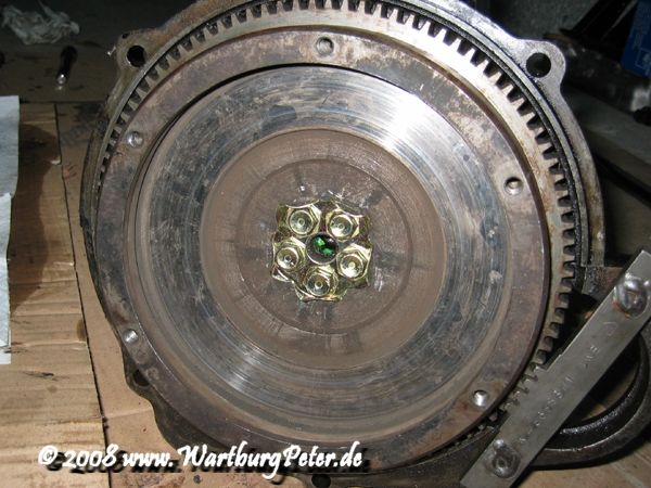 3. Einführen der 8 Befestigungsschrauben mit Federscheiben (ggf. an die Halterung der Drehstromlichtmaschine denken).