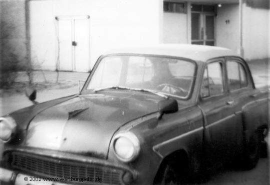 Das Auto war in einem eklatant schlechtem Zustand, so daß ich ihn alsbald wieder verkauft habe, da ich über nichts verfügte, was man für so ein Auto braucht: Garage, Werkstatt, Ersatzteile - geschweige denn Beziehungen. Dennoch denke ich gern an meinen alten Moskwitsch zurück. Heute hätte ich ihn gerne wieder. Immerhin, einige Anekdoten zu diesem Auto habe ich parat - vielleicht erzähl ich es Mal.. |
