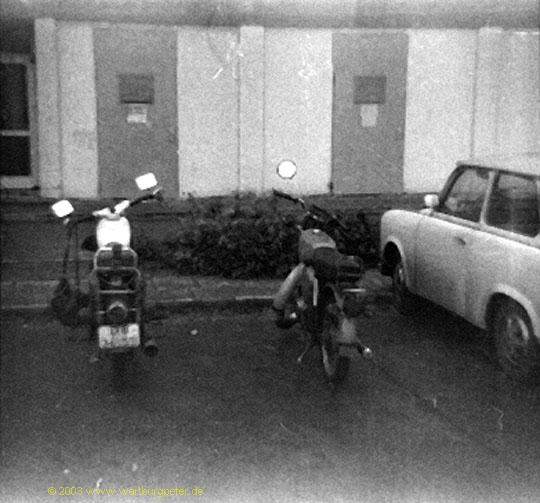 gegangen, um den 1. Hilfe-Kurs zu absolvieren. Dann gleich zur Fahrschule, um den begehrten Berechtigungsschein (M) für Kleinkrafträder bis 50 cm³/ 60 km/ h (!) zu machen, damit ich ja mit 15 die "Fleppen" ausgehändigt bekam. Für dieses mein erstes und eigenes "Moped" mußte ich dann doch noch einiges sparen und vor allem in den Ferien arbeiten gehen. Schließlich war ich "erst" 16, als ich meinen ersten fahrbaren Untersatz hatte. Der S50 B2 war sehr robust und zuverlässig. Nervig war jedoch, daß permanent der Kotflügel unterhalb der Sitzbank einriß und mehrmals geschweißt werden mußte. Einen digitalen Fotoapparat besaß ich damals nicht, entdeckte aber kürzlich ein paar Bilder meiner Certo 100SL (Kennen Sie die?).