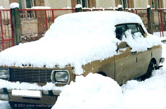 Dies war mein erster Wartburg (Bj. 83), den ich 1991 von meinem Freund Glenn übernahm. Das absolut besondere an diesem Auto war der tip-top Pflegezustand, bis in die kleinste Ritze! Ansonsten vollkommener Werksstandard. Das "neue" Heckmittelteil bekam er irgendwann einmal nach einem kleinen Auffahrunfall noch vor meiner Zeit. Leider, leider mußte dieser Wartburg schon 1993 verschrottet werden, da nach einem (unverschuldeten) Unfall die Karosserie zu stark beschädigt war. |