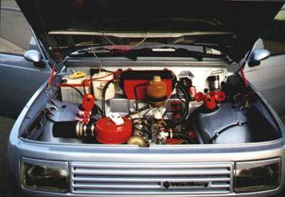 Ich habe mit Uwe Kontakt aufgenommen, weil mich interessierte, wie er seine Zentralverriegelung eingebaut hat. Nebenher hat er mir angeboten, Fotos von seinem Auto auf meiner HP zu veröffentlichen, was ich hiermit auch gerne tun möchte. Uwe hat sehr viel Zeit in seinen Wartburg investiert und einen echten Blickfang daraus gemacht. Er sagt, er hat ca. 7 Monate dafür gebraucht und etwa 15.000 DM investiert.