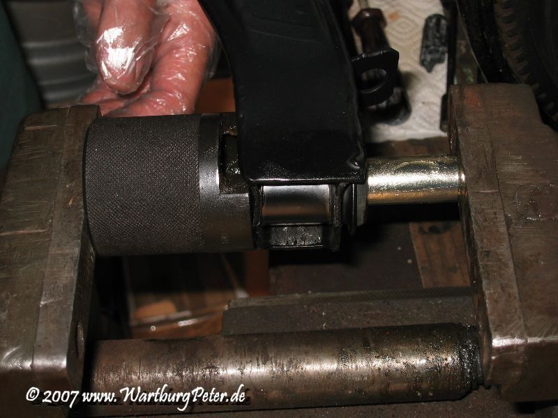 - saubere, rostfreie Buchse gut gefettet ansetzen und mit dem Schraubstock einpressen