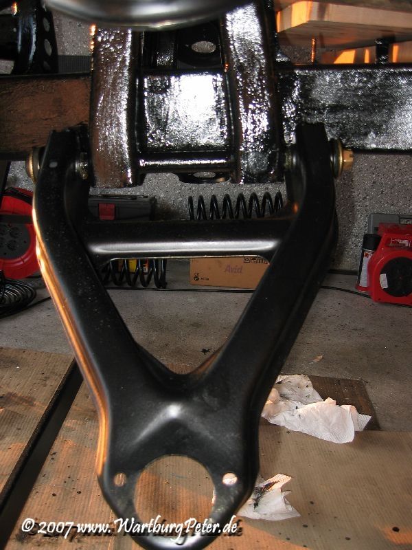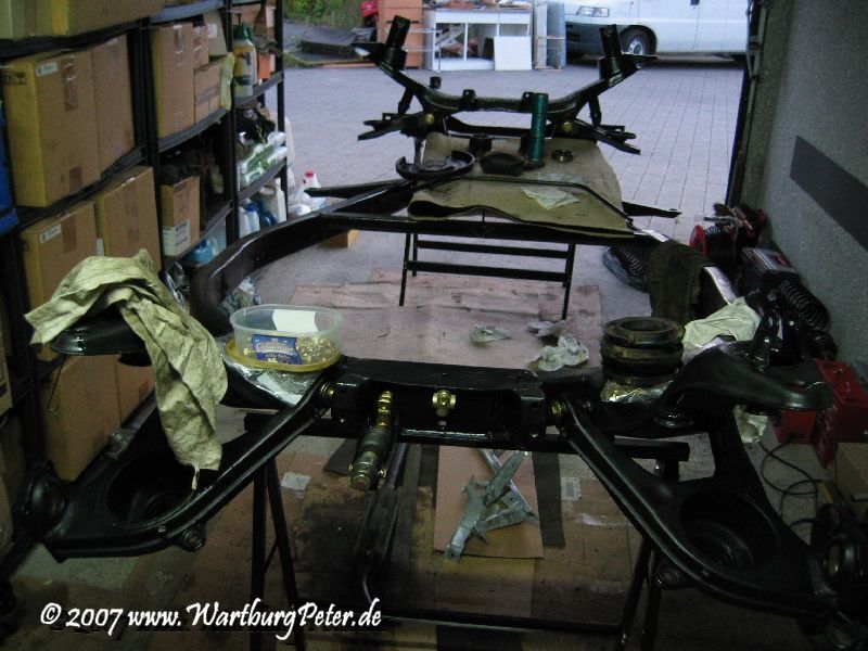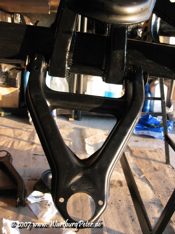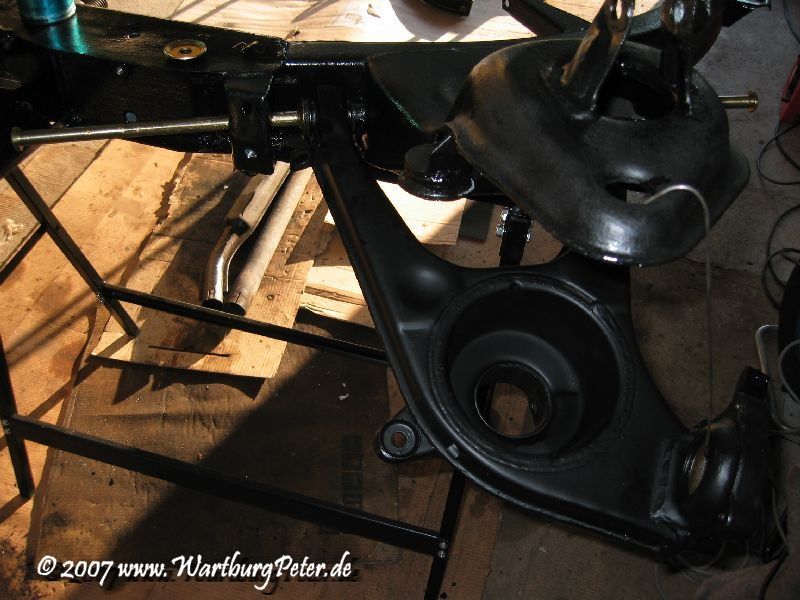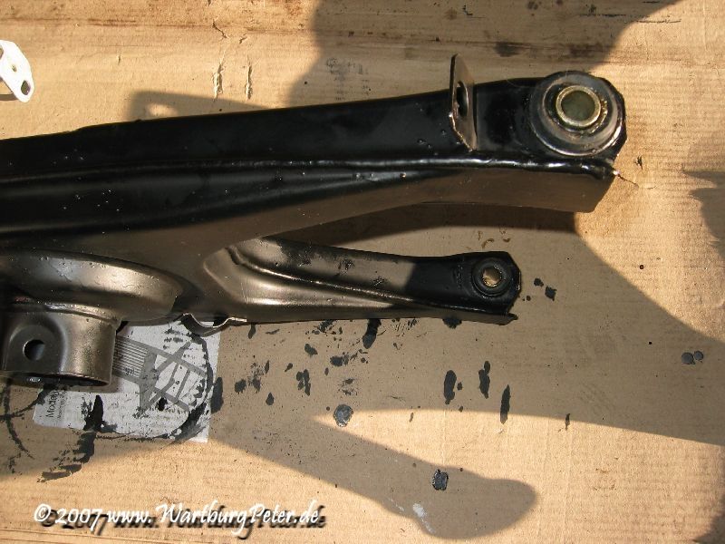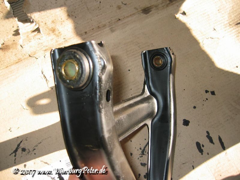 Die Querlenker hinten sitzen etwas straffer, so daß das Einpressen hier deutlich schwerer und fehlerbehafteter ist.