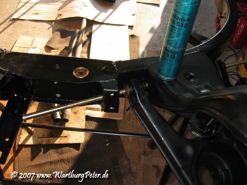 Alle Querlenkerrundstäbe sind sorgfältig zu fetten (meine sind im übrigen zuvor auch mit POR15 Klarlack behandelt)!