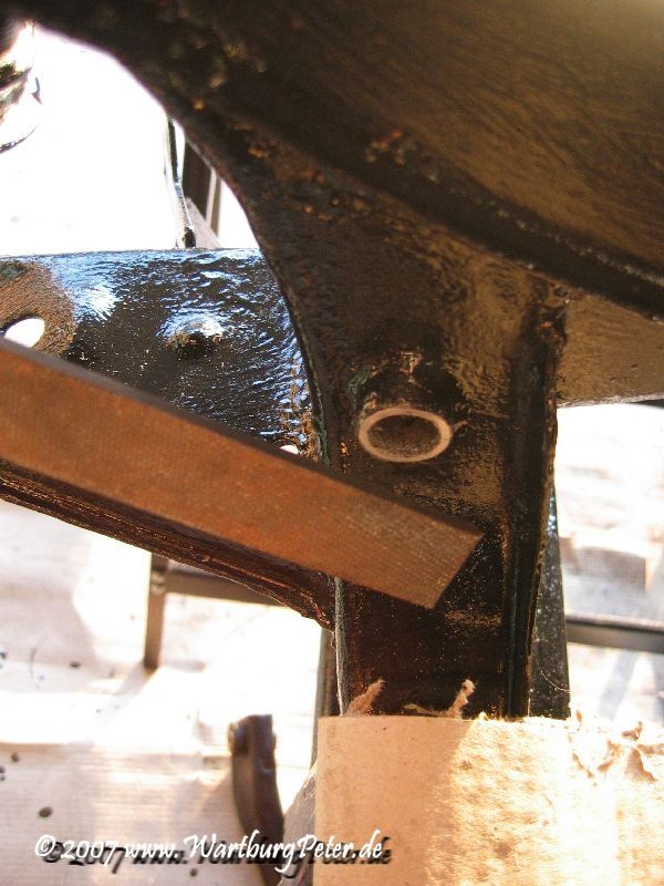 Alle Querlenkerrundstäbe lassen mit leichten Druck einschieben (oder sehr leichte Schläge mit dem Gummihammer). Geht das sehr schwer oder kippelig zu leicht, stimmt etwas nicht!