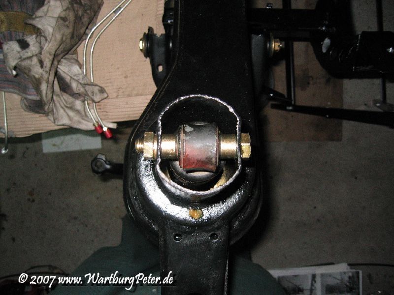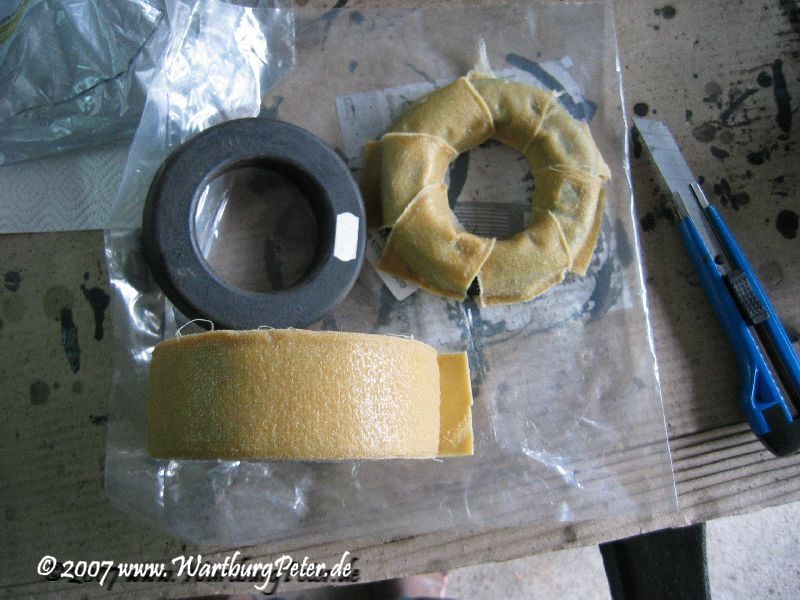 Bevor ich die Federn am Fahrgestell montiere, belege ich daher die Gummiauflagen mit dem Fettband. Das darin enthaltene Fett genügt, um unter der enormen Druckkraft der Federn, sich im gesamten Domlager zu verteilen.