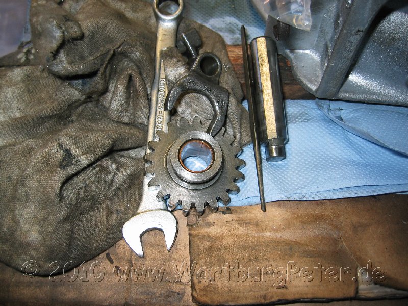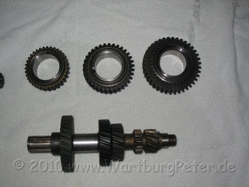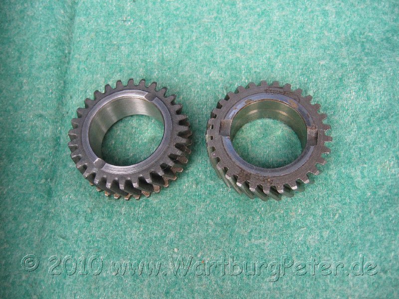 Bild mitte, Vergleich zwischen neuem (links) und altem 4. Gang Zahnrad (rechts).